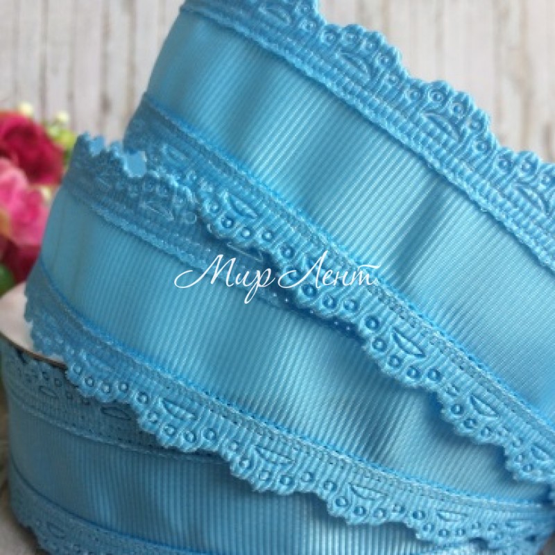 Репс с ажурным кантом, 3,5 см, светло-бирюзовый, рулон 20 ярдов (18,5 м)