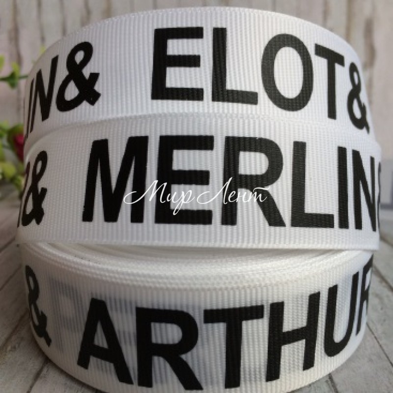 Репс с надписью ELOT&PERCIVAL, 2,5 см, белый, рулон 23 м