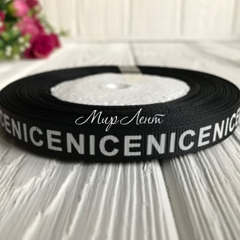 Репс с надписью FASHION, 1 см, черный, рулон 23 м