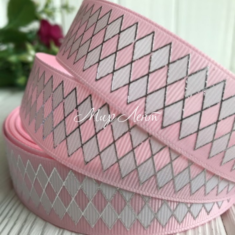 Репс с ромбами, 2,5 см, светло-розовый, рулон 23 м