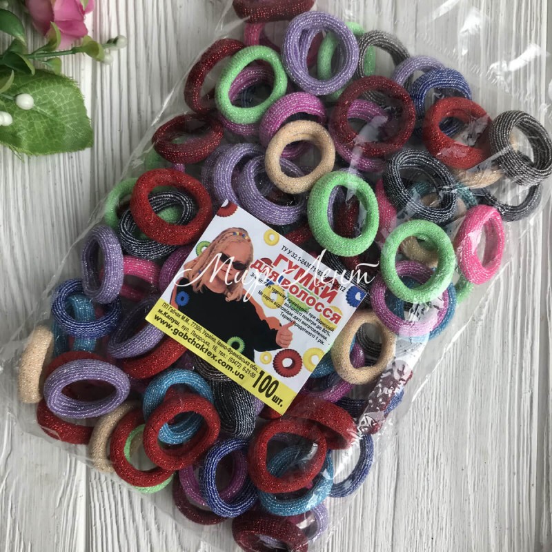 Резинка Калуш с люрексом, 2,5 см, цветной микс, упаковка 100 шт.