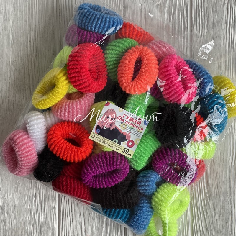 Резинка махровая, 5 см, цветной микс, упаковка 50 шт.