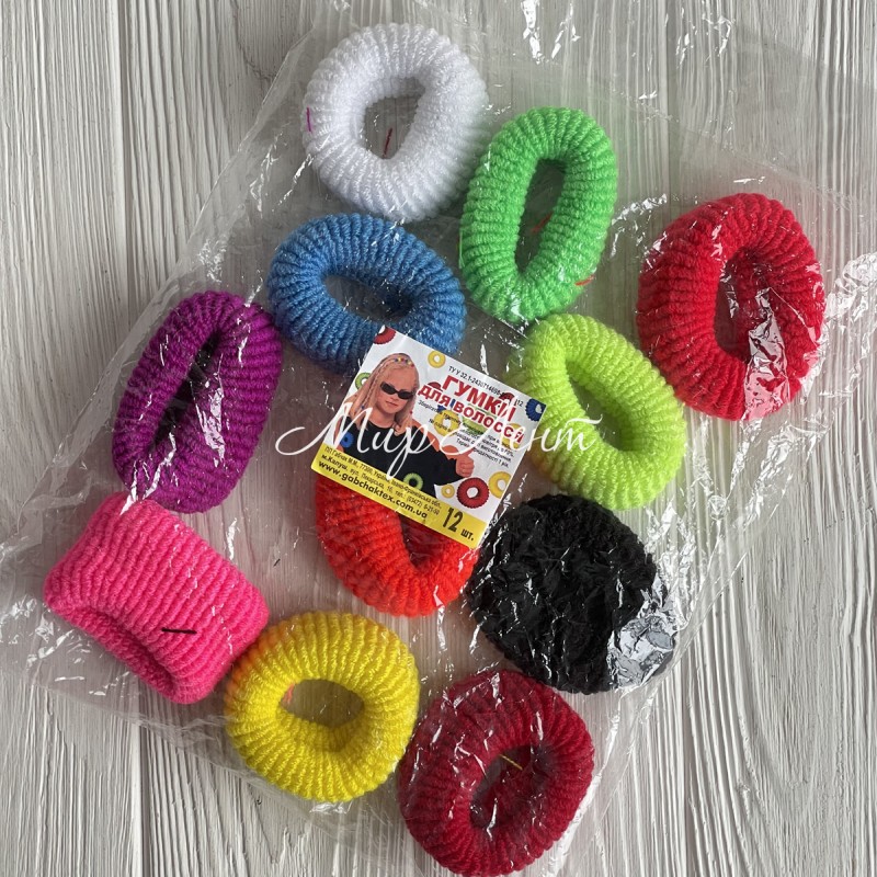 Резинка махровая, 6 см, цветной микс, упаковка 12 шт.