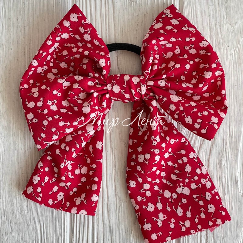 Резинка Твилли большой бант в цветочек, 16 см, красная с белым, шт.