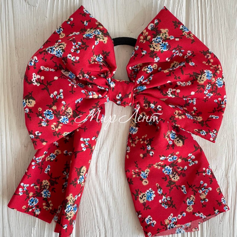 Резинка Твилли большой бант в цветочек, 16 см, красная, шт.