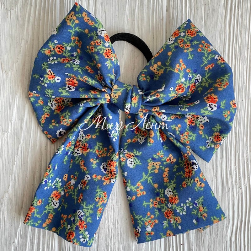 Резинка Твилли большой бант в цветочек, 16 см, светло-синяя, шт.
