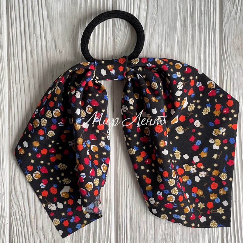 Резинка Твилли с перемычкой в цветочек, 25 см, черная с хлопком, шт.