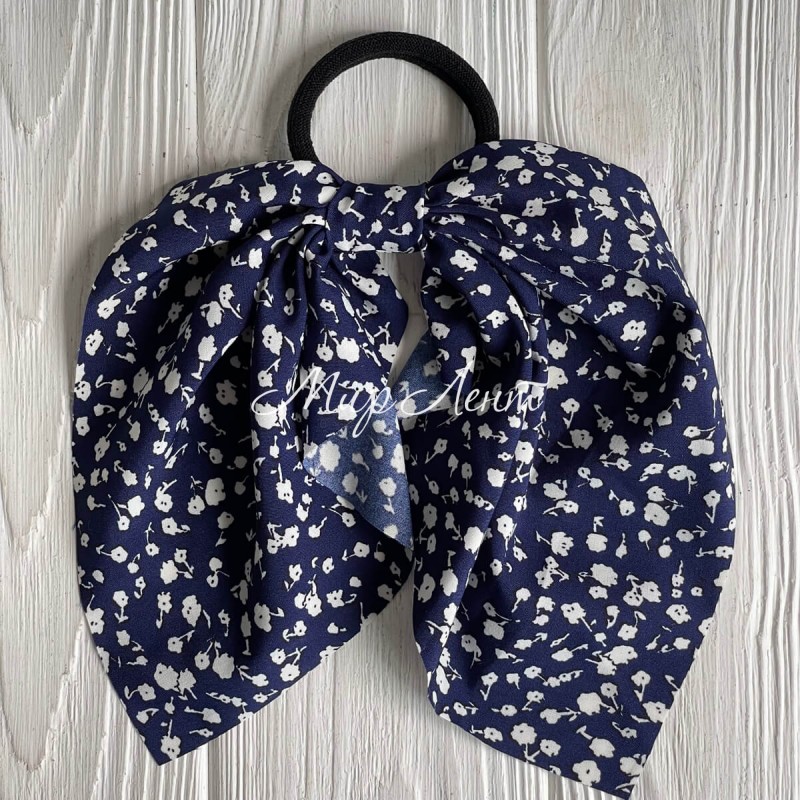 Резинка Твилли с перемычкой в цветочек, 25 см, сапфировая с белым, шт.