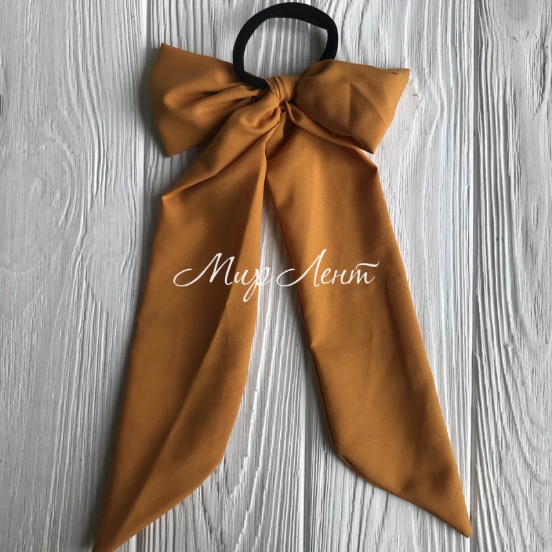 Резинка Твилли с узким бантом однотонная, 30 см, горчичный, шт.