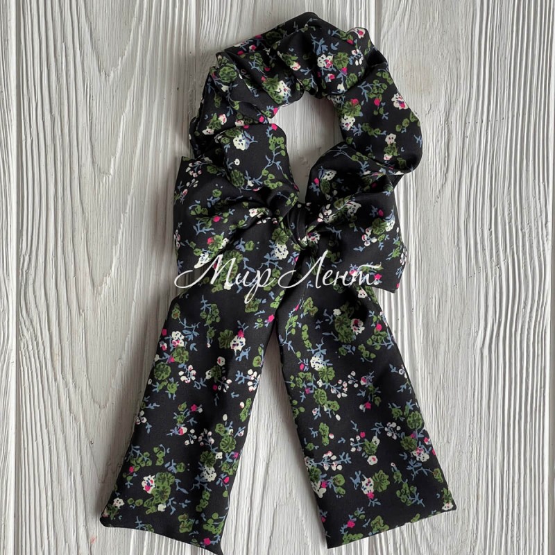 Резинка Твилли жатка бант в цветочек, 27 см, черная, шт.