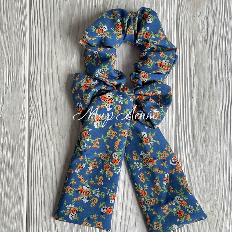 Резинка Твилли жатка бант в цветочек, 27 см, светло-синяя, шт.