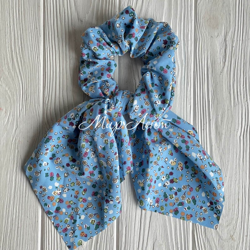 Резинка Твилли жатка в цветочек, 27 см, голубая с хлопком, шт.