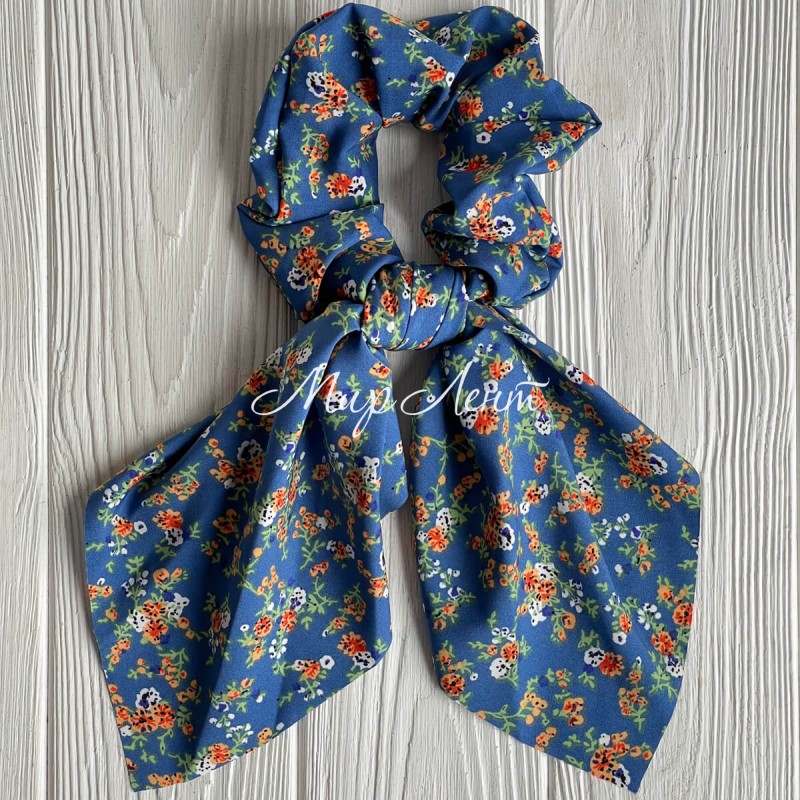 Резинка Твилли жатка в цветочек, 27 см, светло-синяя, шт.