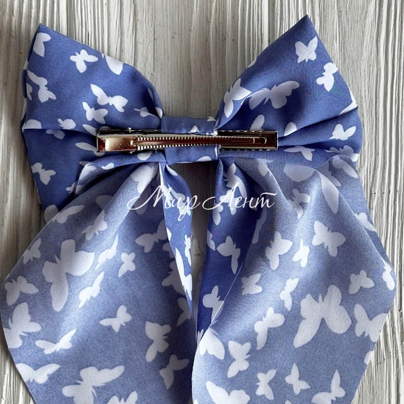 Резинка (уточка) маленький бант платок с бабочками, 14х23 см, голубо-лиловая, шт.