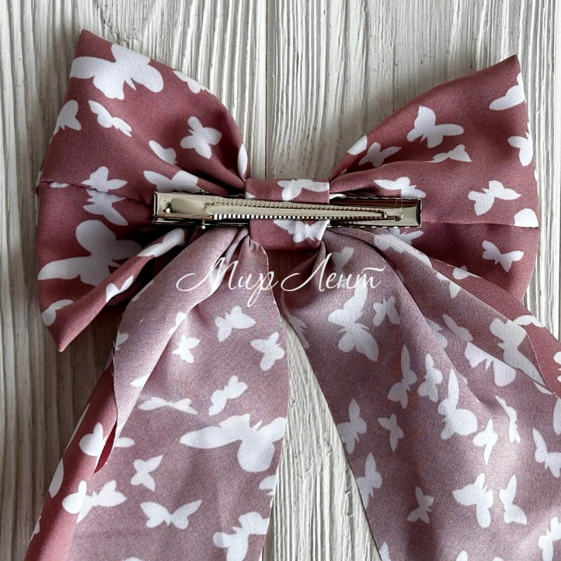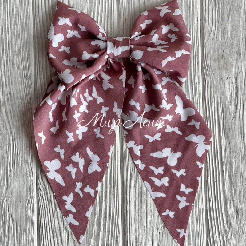 Резинка (уточка) маленький бант платок с бабочками, 14х23 см, пудровая, шт.