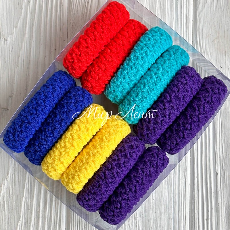 Резинка в коробке (вязка), 4,5 см, фиолетово-желто-синяя, упаковка 12 шт.