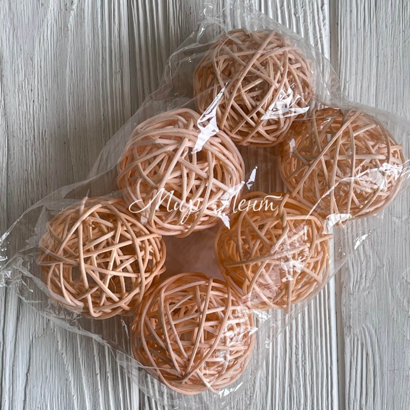 Ротанговый шарик, 5 см, персиковый, упаковка 6 шт.