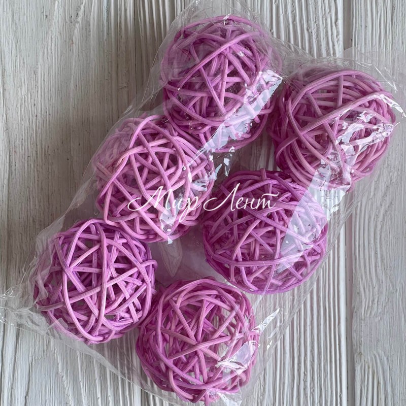 Ротанговый шарик, 5 см, розово-сиреневый, упаковка 6 шт.