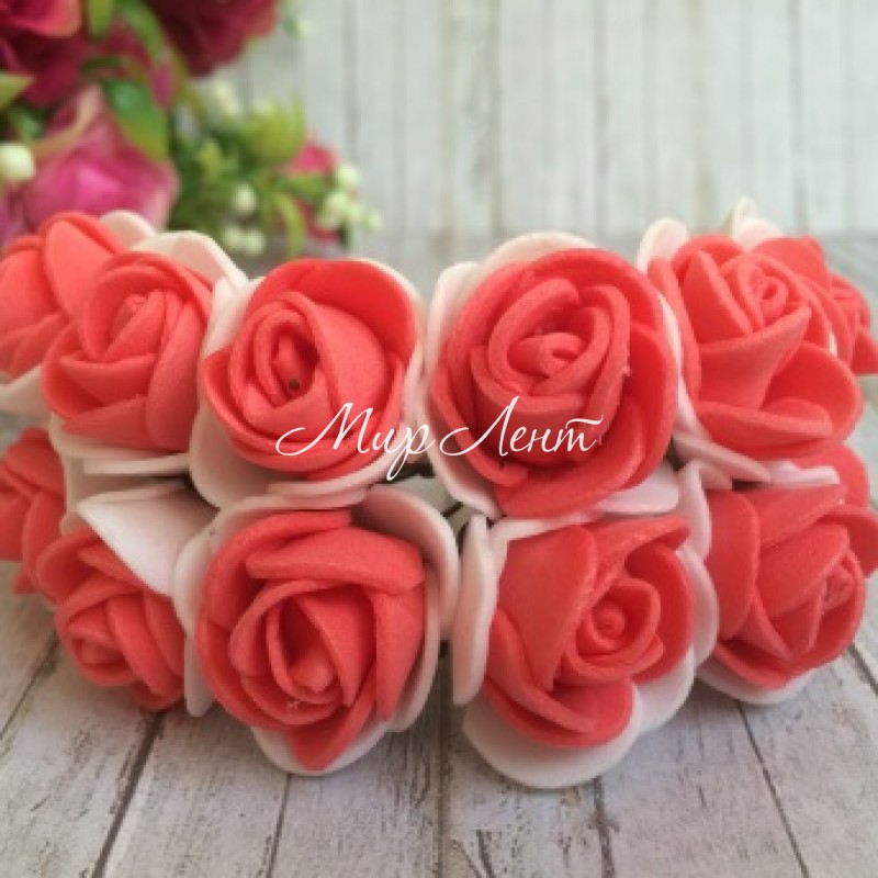Роза 2,2 см, бело-алая, упаковка 12 пучков (144 шт.)