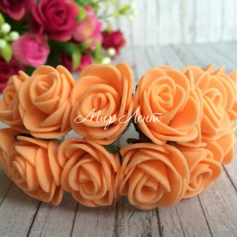 Роза 1,5-2 см, темно-персиковая, упаковка 12 пучков (144 шт.)