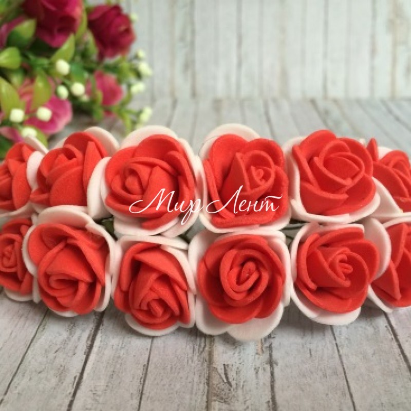 Роза 2,2 см, бело-красная, упаковка 12 пучков (144 шт.)