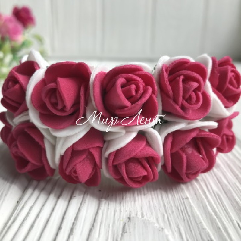 Роза 2,2 см, бело-малиновая, упаковка 12 пучков (144 шт.)