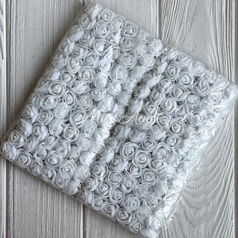 Роза с фоамирана (фатин), 2 см, белая, упаковка 12 пучков (144 шт.)