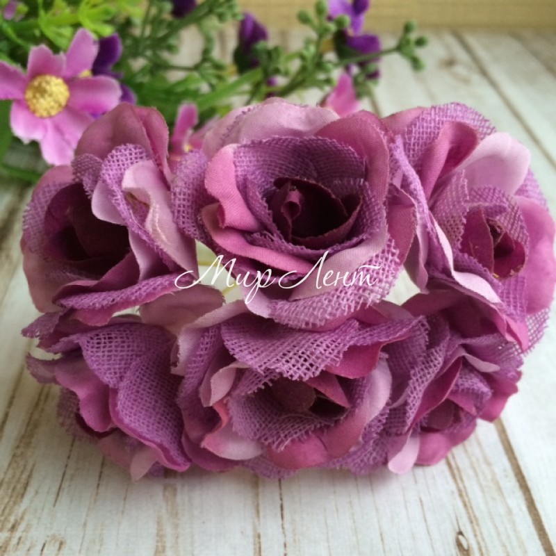 Роза с тканью, 3,5 см, сиреневая, упаковка 36 шт.