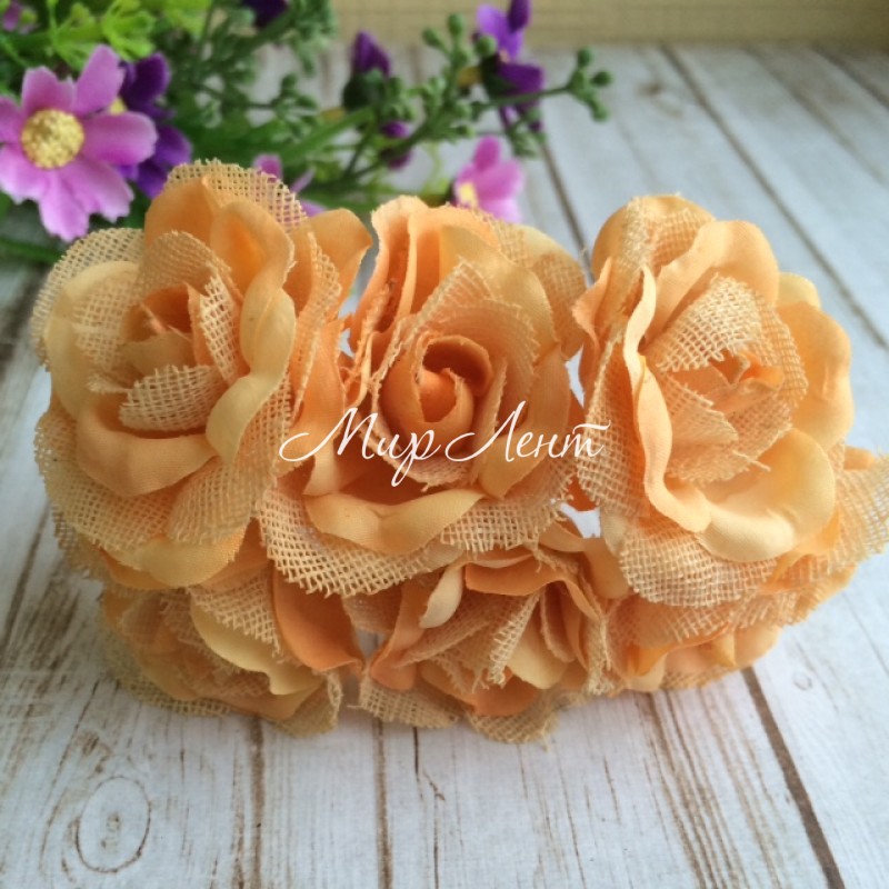 Роза с тканью, 3,5 см, темный персик, упаковка 36 шт.
