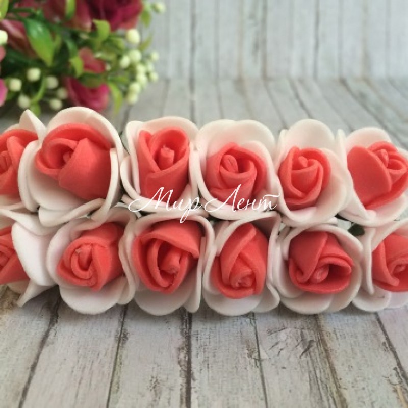 Роза 1,5-2 см, бело-алая, упаковка 12 пучков (144 шт.)