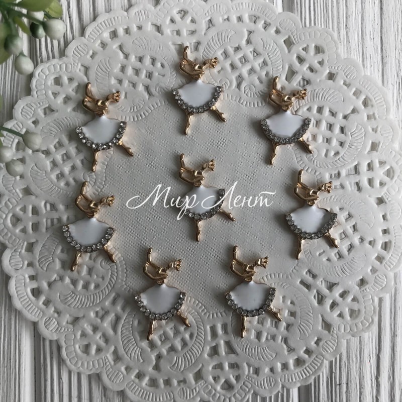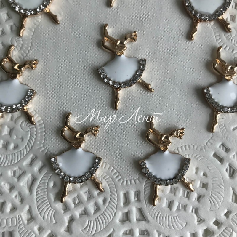 Серединка металл танцующая балерина, 28 мм, белый, упаковка 10 шт.