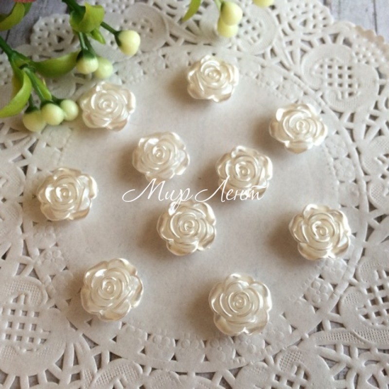 Серединка розочка мини с перламутром, 10 мм, белая, упаковка 500 г.