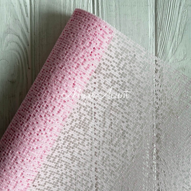 Сетка флористическая "Клеточка" (J00357), розовая, рулон 4,6 метра