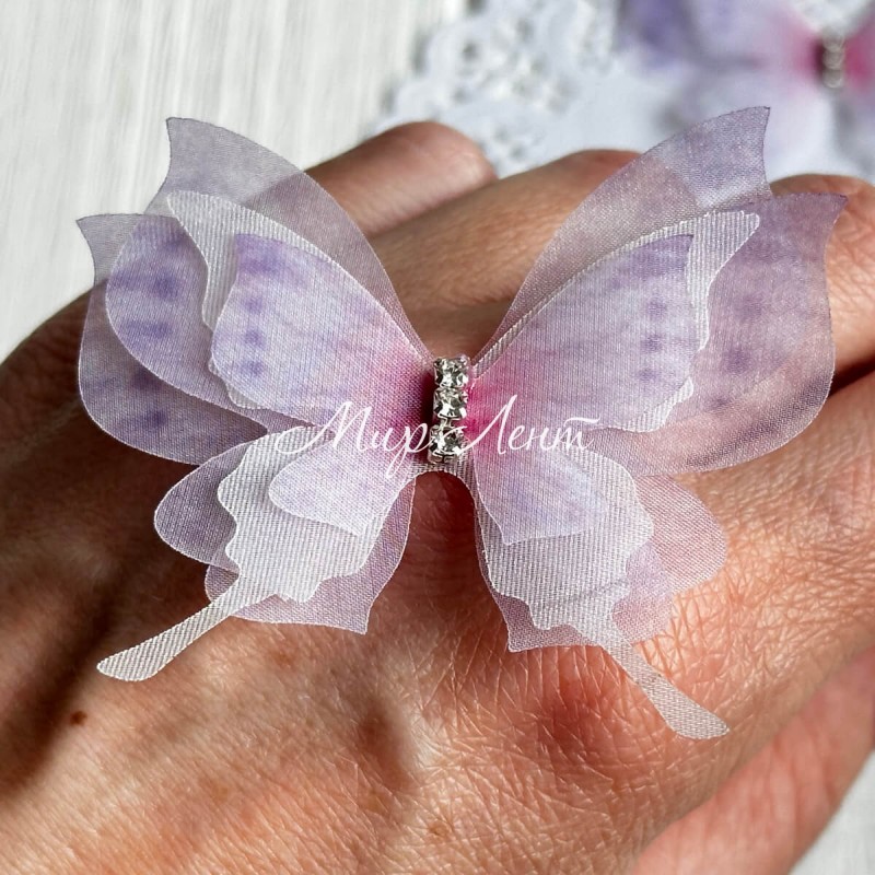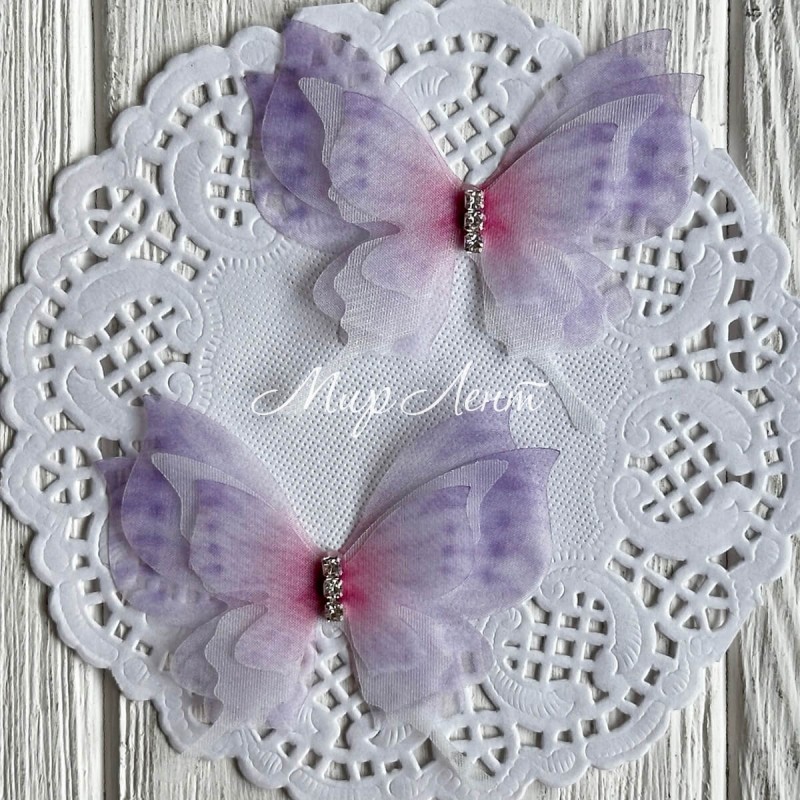 Шифоновая бабочка трехслойная со стразами (хамелеон), 5,7х5,5 см, лилово-малиновая, упаковка 25 шт.