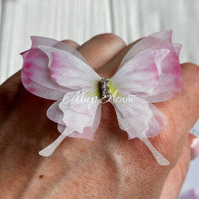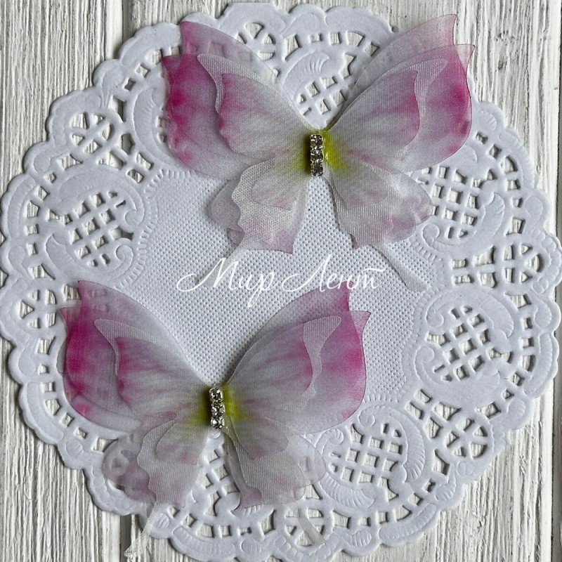 Шифоновая бабочка трехслойная со стразами (хамелеон), 6х5,5 см, малиново-оливковая, упаковка 25 шт.