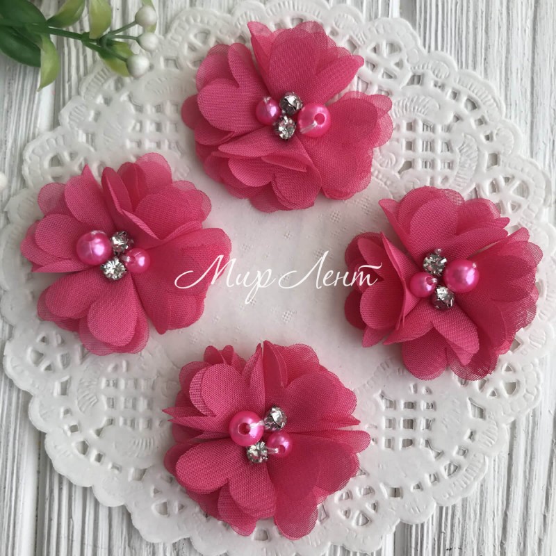 в серединке пришиты две бусины жемчуга и стразы в цапах