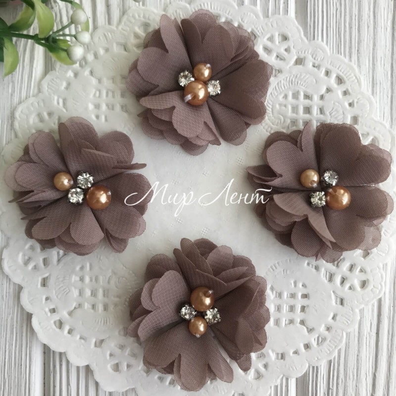 в серединке пришиты две бусины жемчуга и стразы в цапах