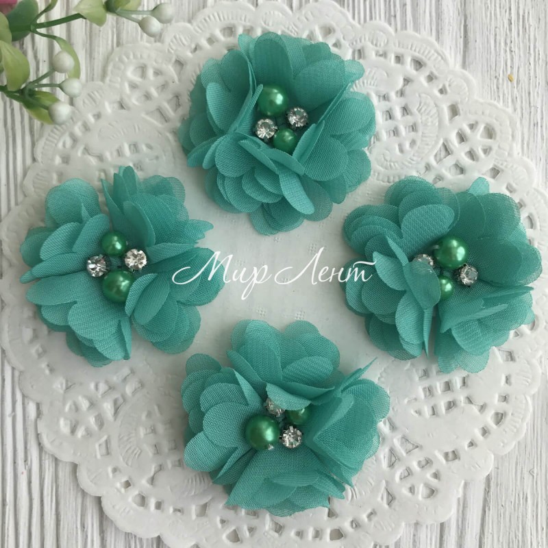 в серединке пришиты две бусины жемчуга и стразы в цапах