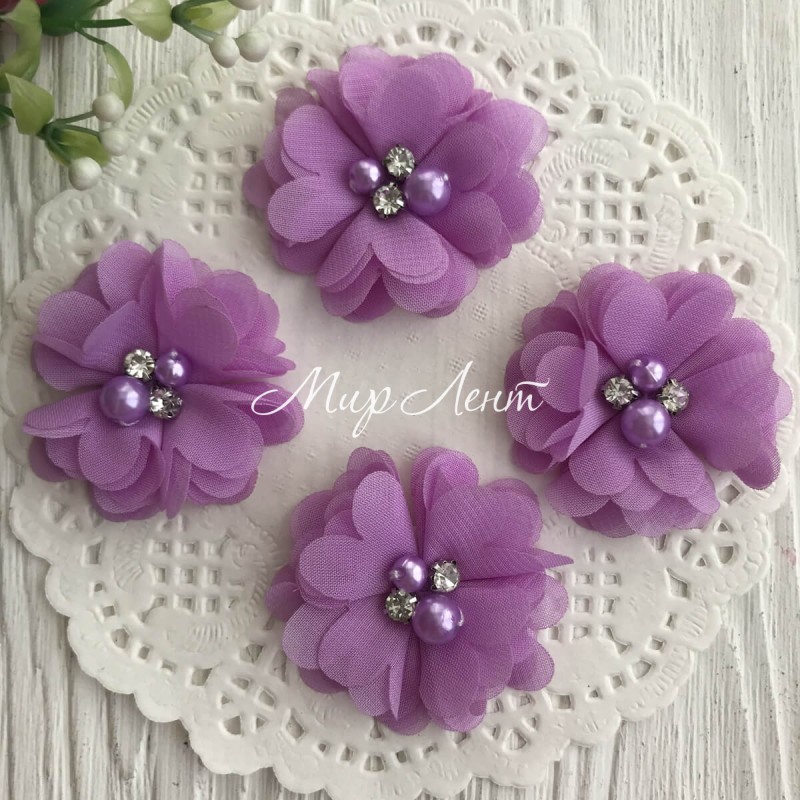 в серединке пришиты две бусины жемчуга и стразы в цапах