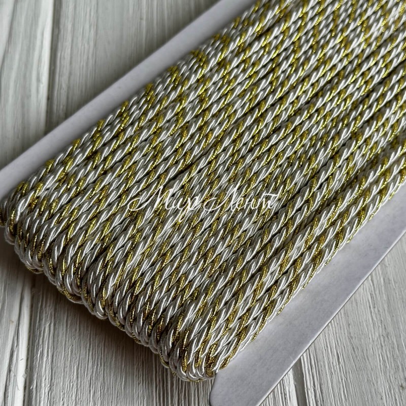 Шнур декоративный, 3 мм, белый с золотом, рулон 50 м
