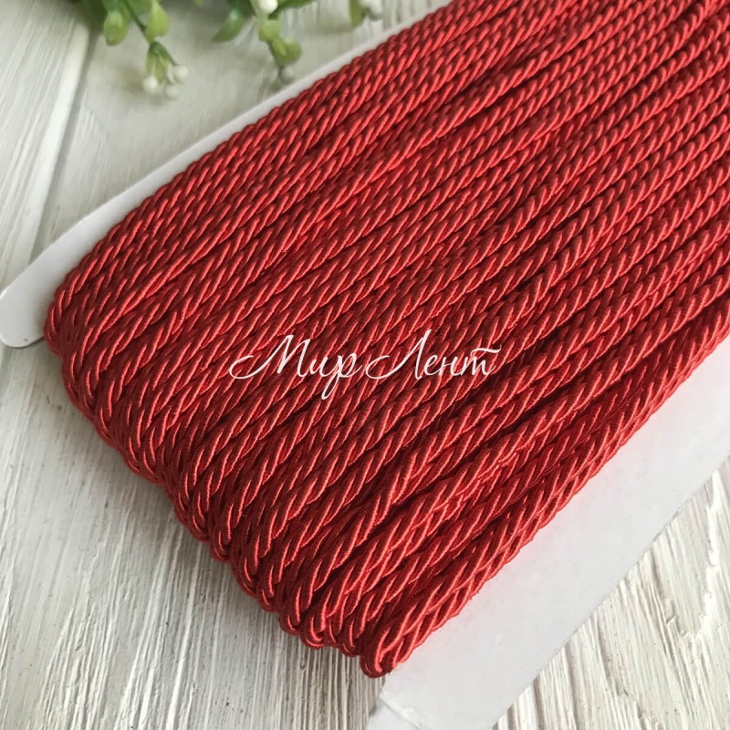 Шнур декоративный, 3 мм, красный, рулон 50 м