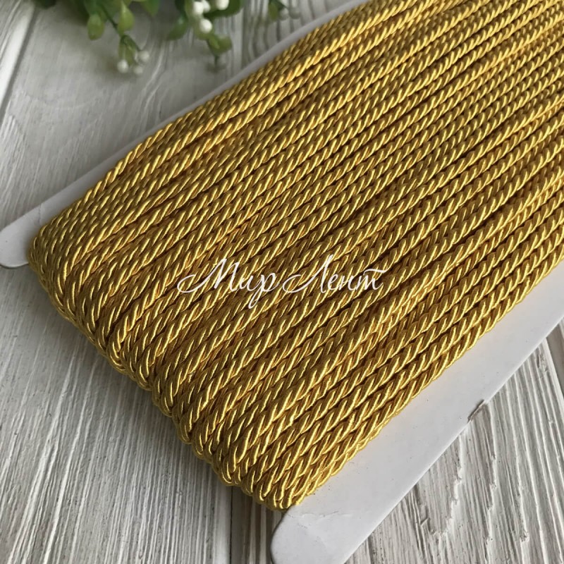 Шнур декоративный, 3 мм, темно-желтый, рулон 50 м