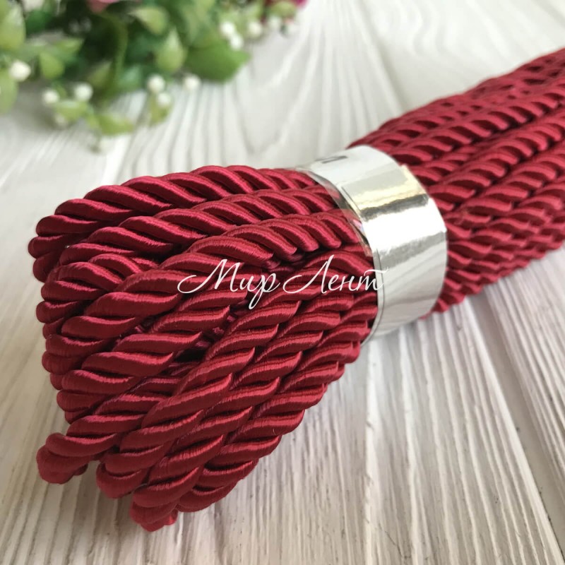 Шнур декоративный, 5 мм, бордовый, рулон 9 м