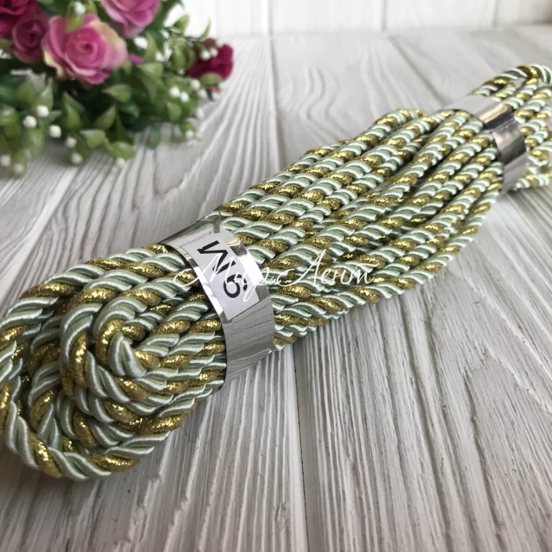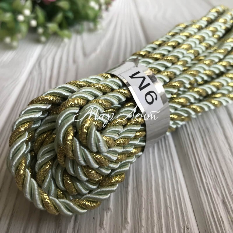 Шнур декоративный, 5 мм, мятный с золотом, рулон 9 м