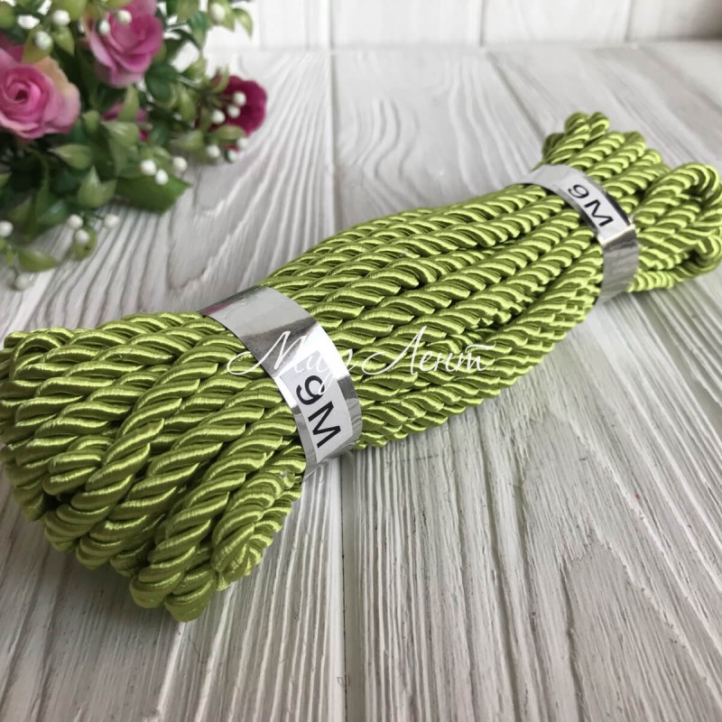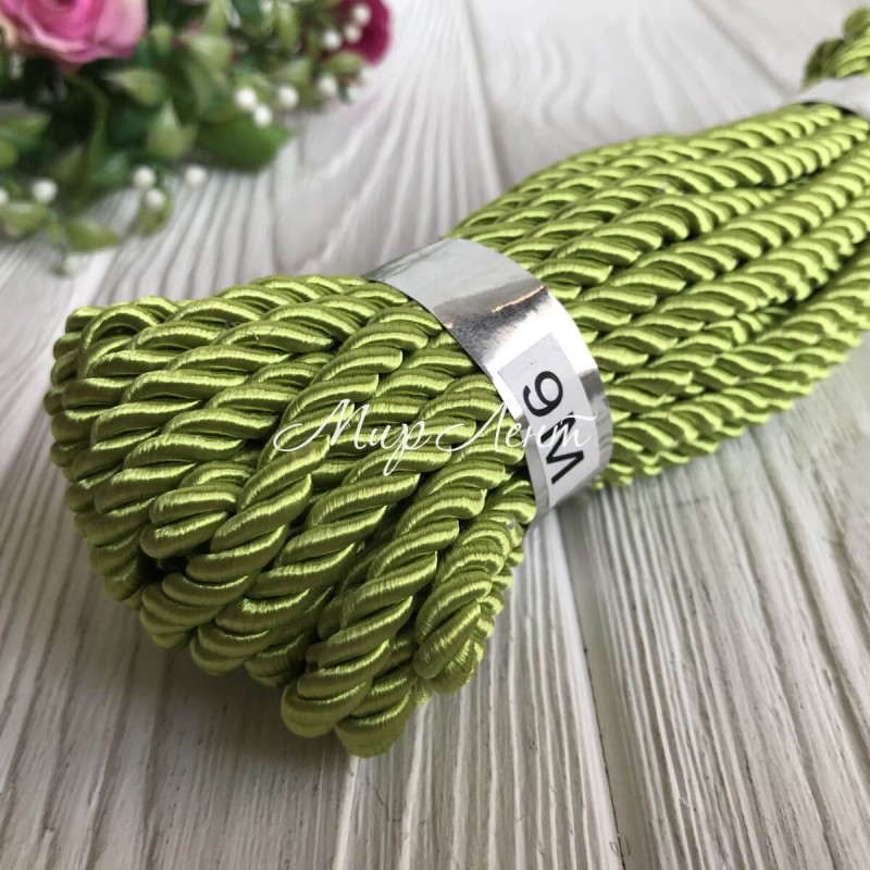 Шнур декоративный, 5 мм, оливковый, рулон 9 м