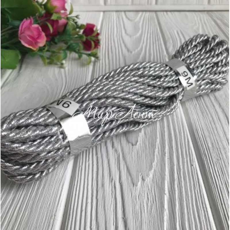 Шнур декоративный, 5 мм, серебро, рулон 9 м