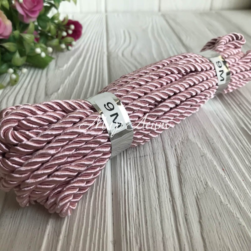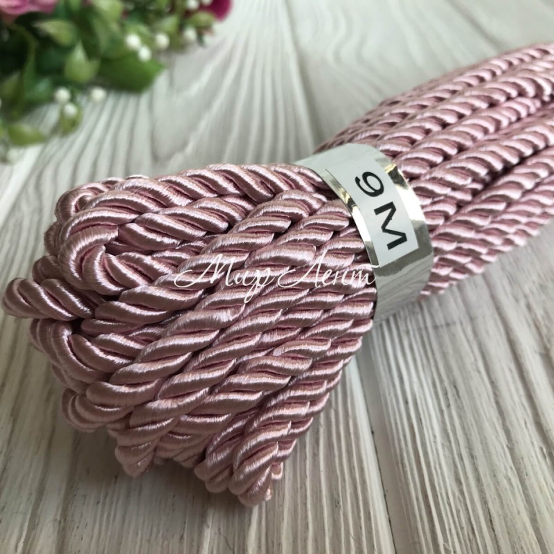 Шнур декоративный, 5 мм, светло-розовый, рулон 9 м