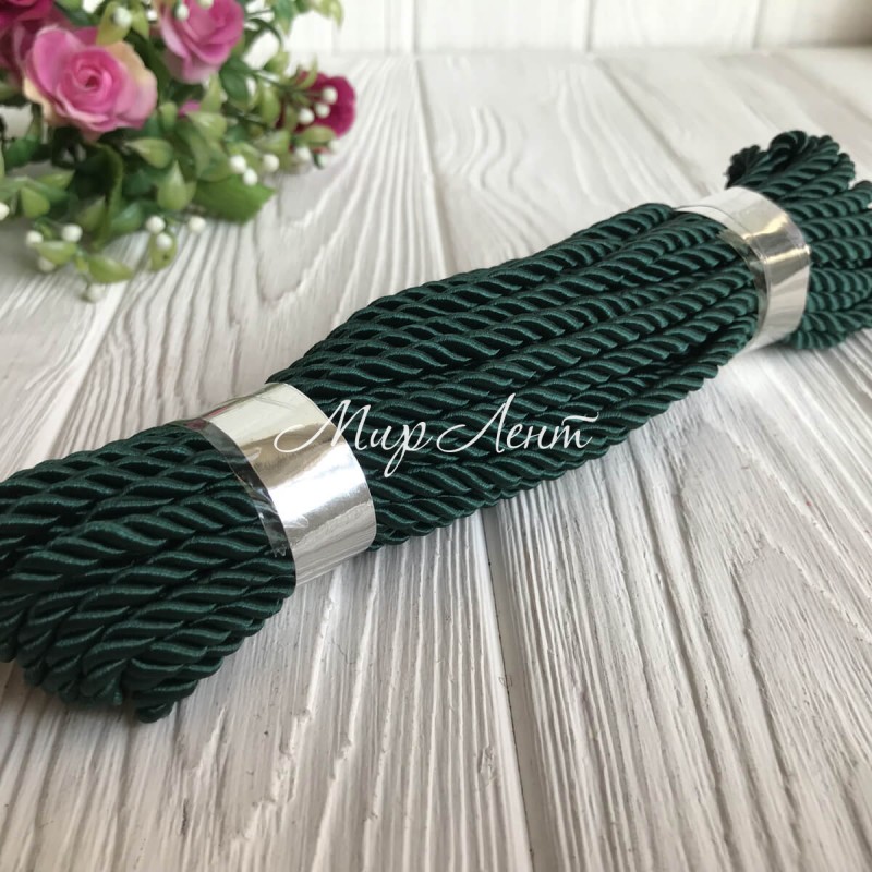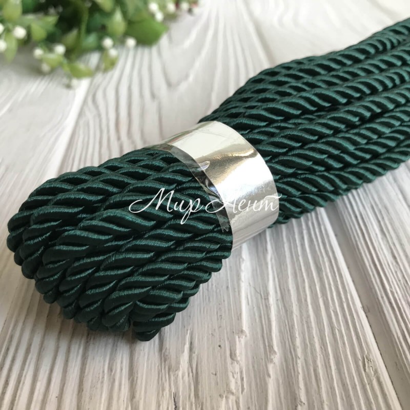 Шнур декоративный, 5 мм, темно-зеленый, рулон 9 м