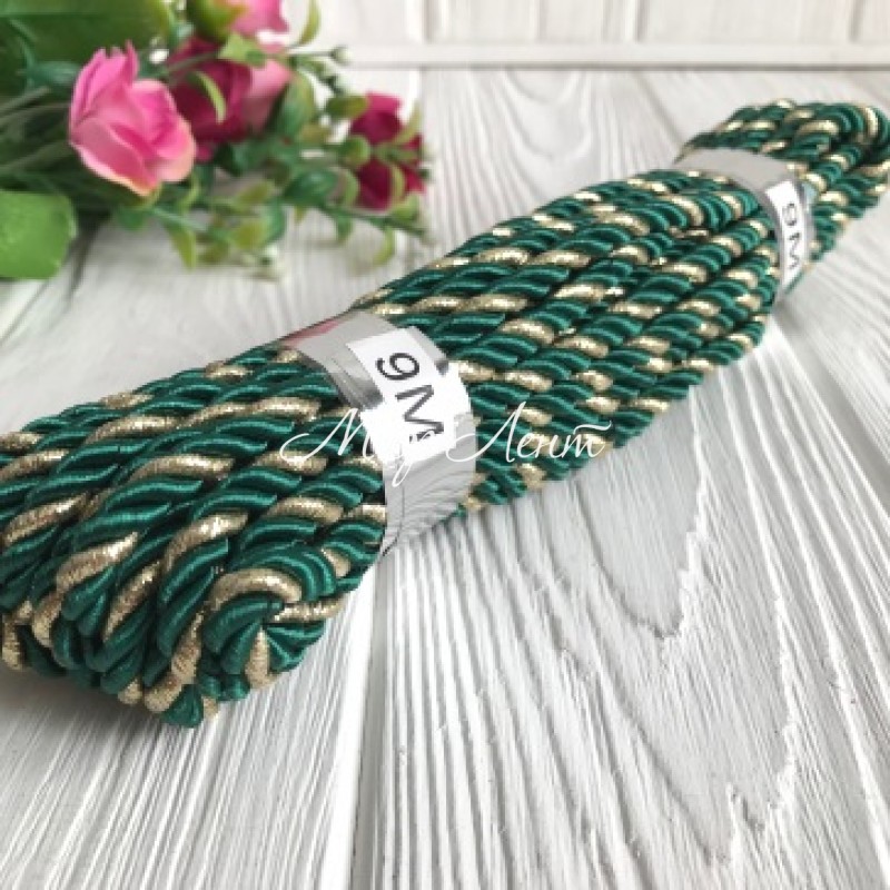Шнур декоративный, 5 мм, зелено-золотой, рулон 9 м