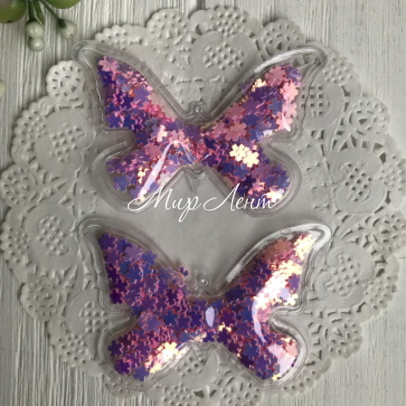 Силиконовая бабочка с наполнителем, 7х4,5 см, розовые перламутровые цветочки, упаковка 20 шт.